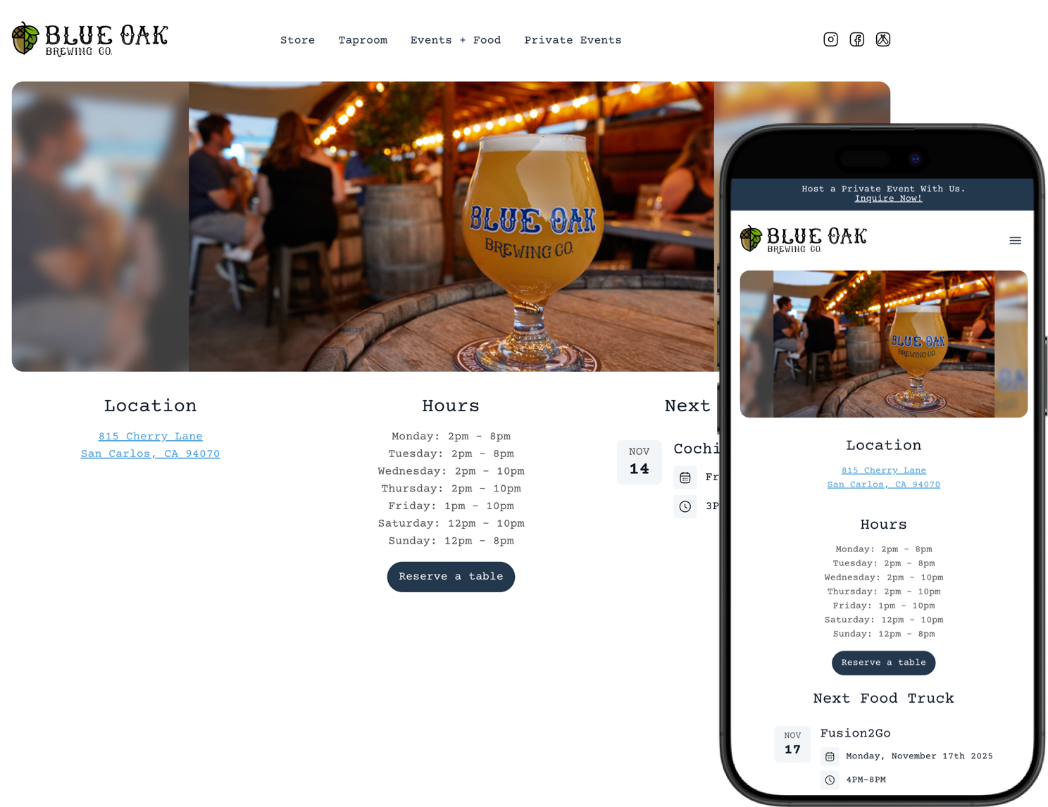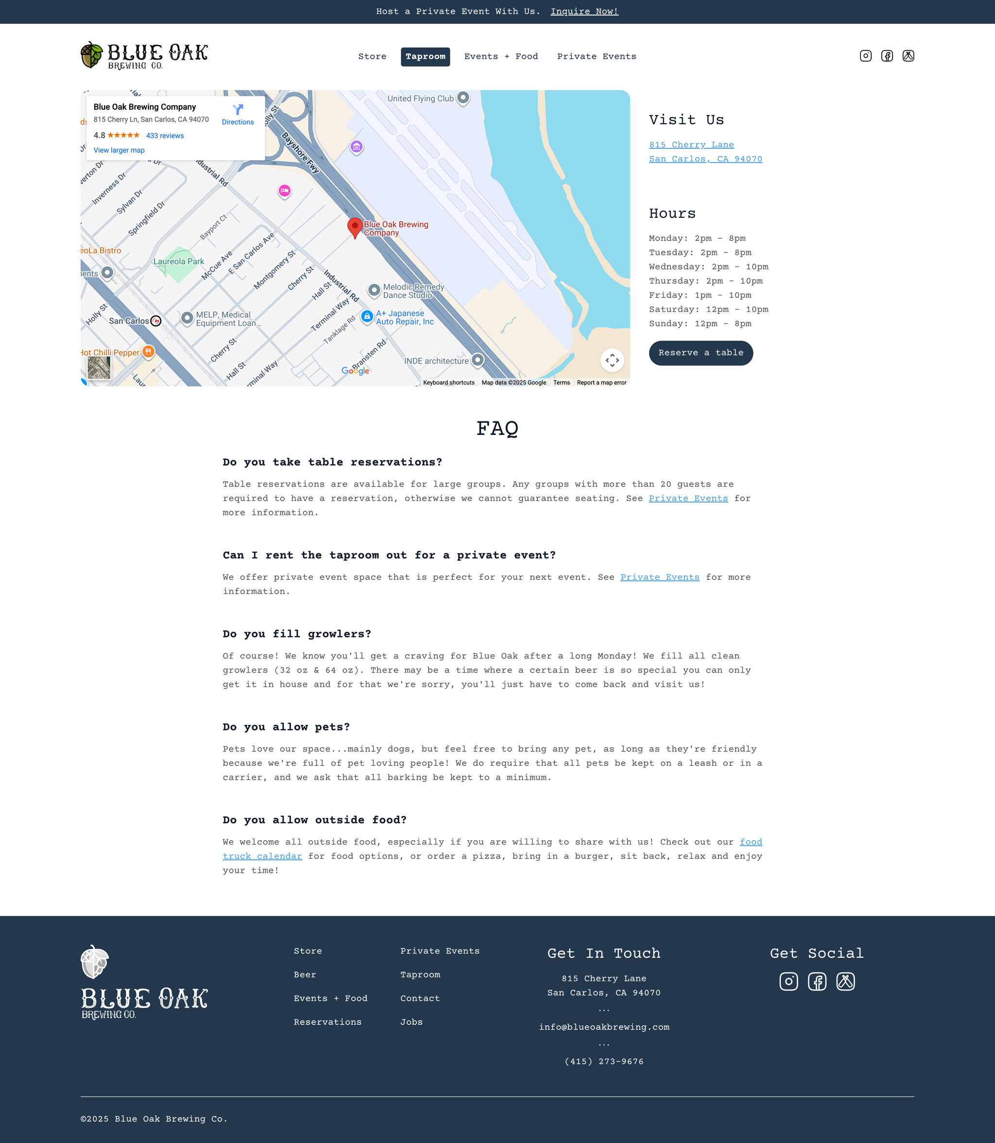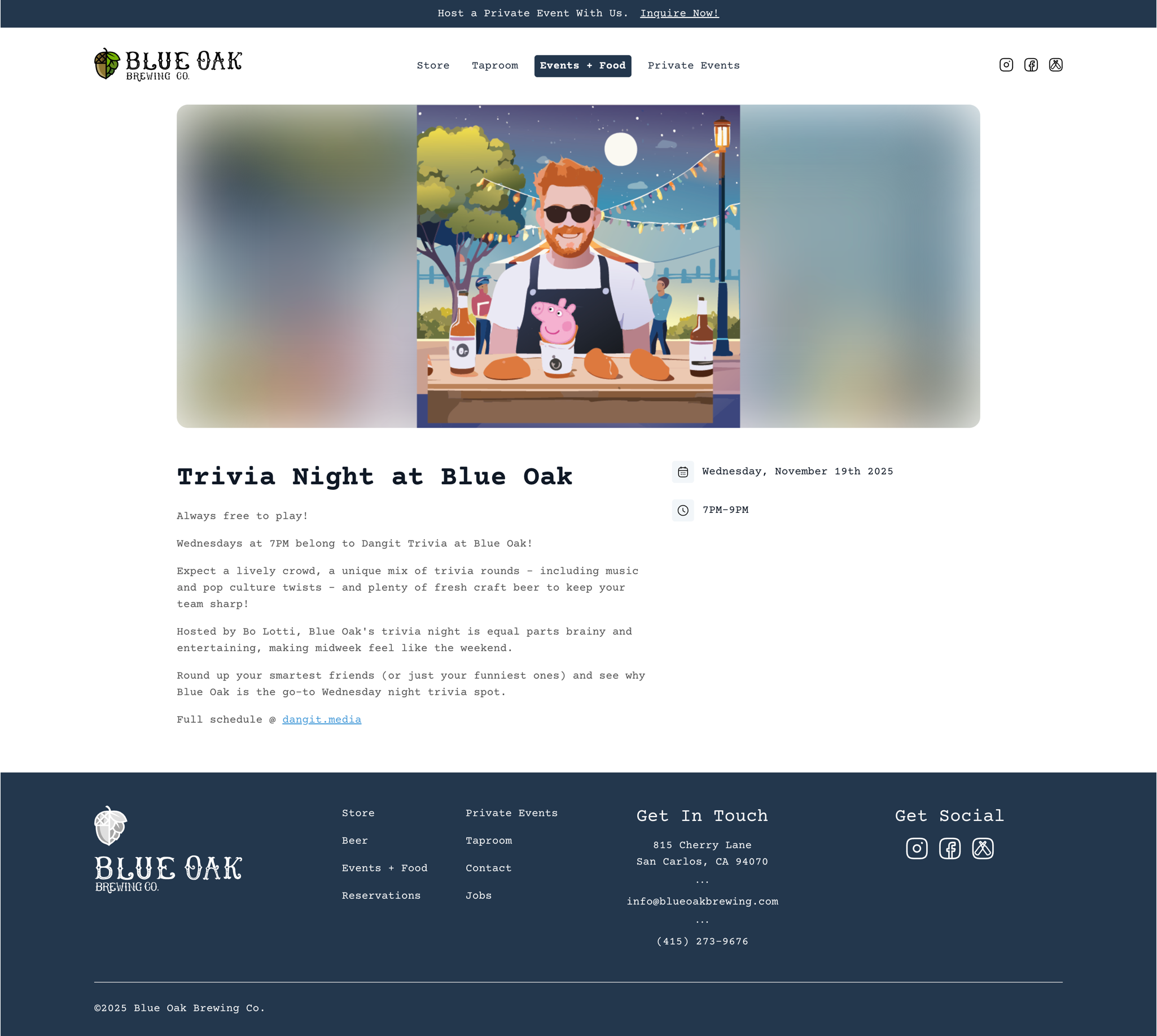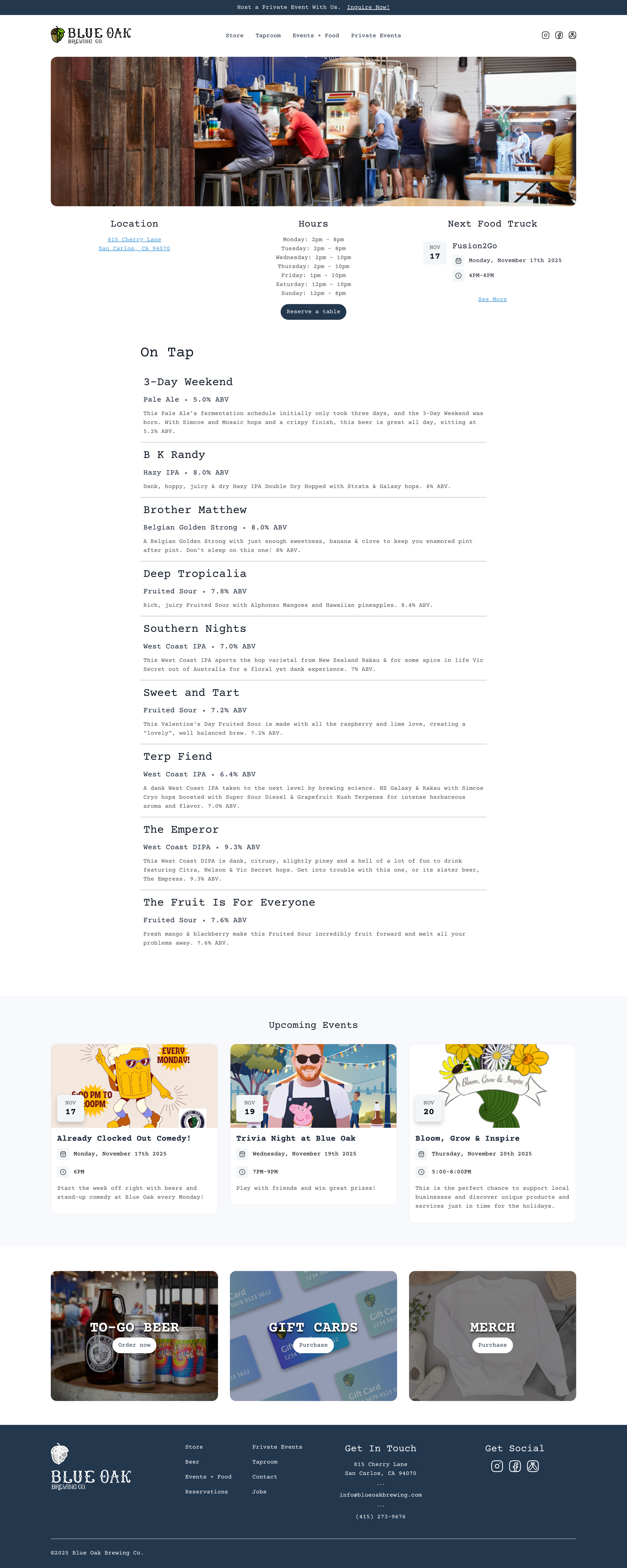 It was important that managing the content on the site be as simple as possilbe. With rotating taps and kegs that can kick at any moment, the menu is constantly changing. That meant integrating with their currnent Square POS to pull the current tap list.
